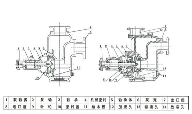 2、檢查泵殼內(nèi)的儲(chǔ)液是否高于葉輪的上邊緣,如若不足,可以從泵殼上的加液口處直接向泵體內(nèi)注入儲(chǔ)液,不應(yīng)在儲(chǔ)液不足的情況下啟動(dòng)運(yùn)轉(zhuǎn),否則泵不能正常工作,且易損壞機(jī)械密封。